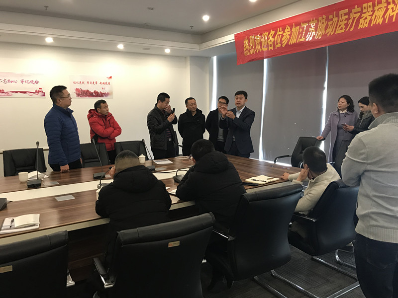 2019年12月7日上午,江苏脉动医疗器械科技有限公司总经理郑晓勇与王凤琴王总以及来自全国各省的合作伙伴举行首届商务研讨会。