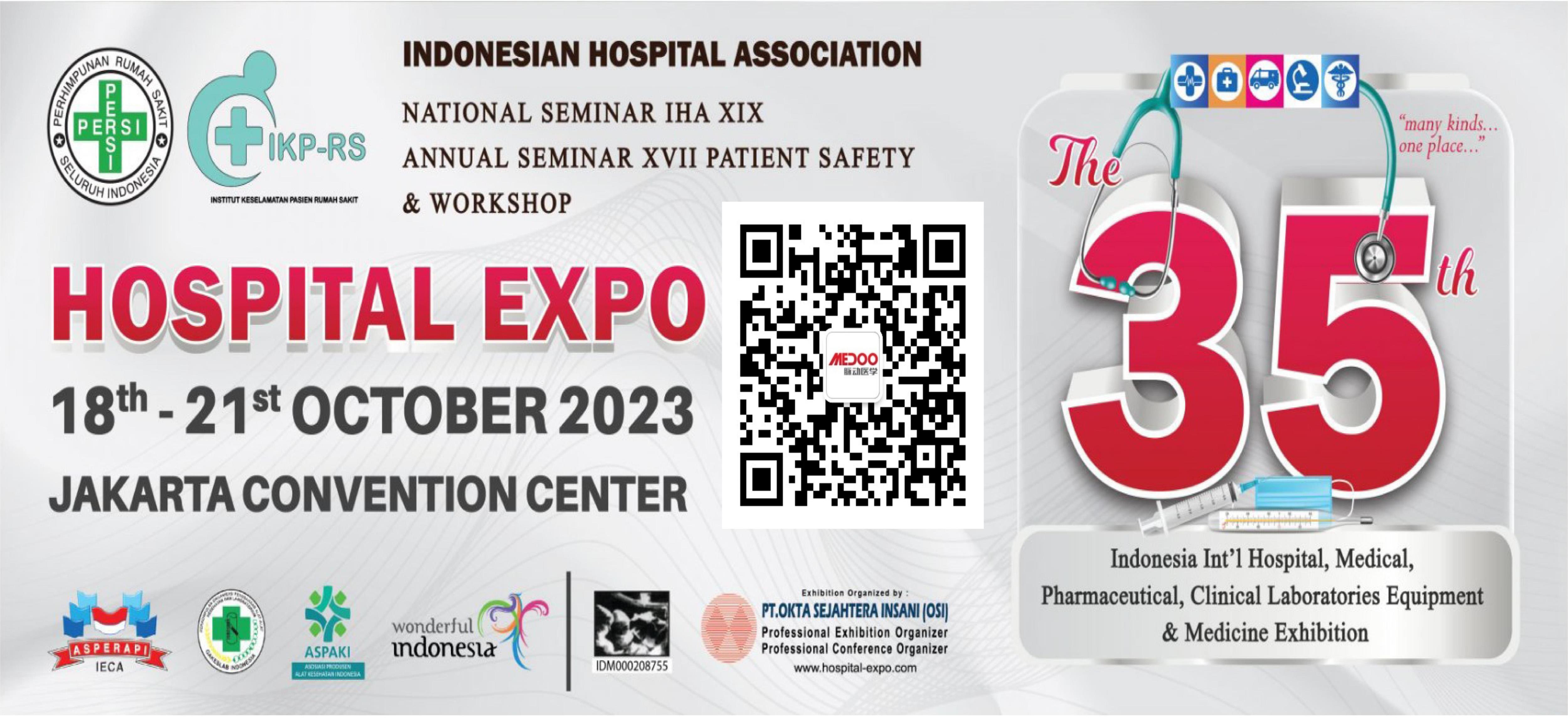 我们诚意邀请您参观将于2023年10月18日至21日在印度尼西亚雅加达会议中心举办的第35届印度尼西亚医院博览会脉动展位!