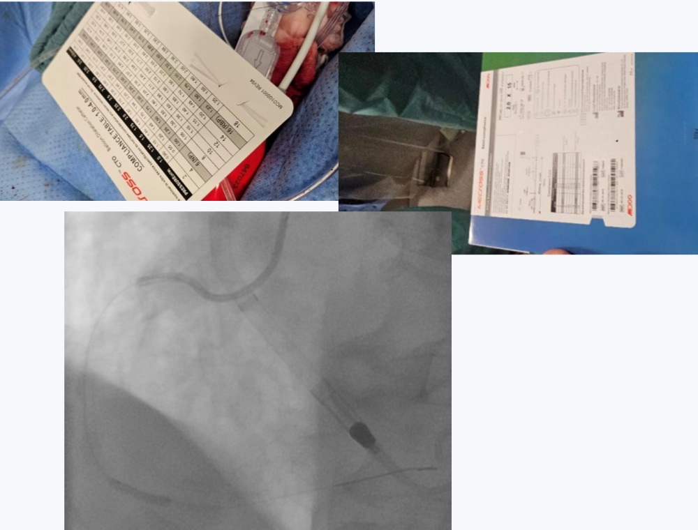 手术选用Medoo MeCross CTO半顺应性PTCA球囊扩张导管 2.0×15mm进行靶病变预扩张,球囊顺利通过指引导管直达病变部位,推送性、跟踪性优异,通过重度钙化血栓病变无明显阻力,与国际一线品牌性能相当。充胀至 14 个大气压时,球囊完全均匀扩张,无狗骨效应;放气迅速有效,撤出过程无阻力,全程无手术并发症。且球囊包装精简,急诊场景下可快速拆封准备,大幅节省术前时间,适配急诊救治的高效需求。后续联合其他器械完成支架植入后,患者血流动力学恢复稳定,顺利转至 ICU 监护。